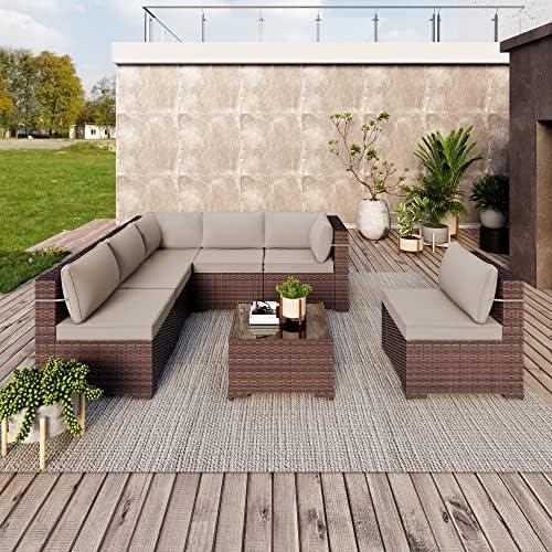 The aesthetic appeal of this patio set complements our outdoor space beautifully. The modern design and rich brown color of the wicker blend seamlessly with nature, enhancing the overall ambiance of our balcony and backyard. We appreciate the versatility of the individual pieces, allowing us to rearrange them based on our needs or preferences. The removable tempered glass top on the coffee table is a fantastic touch, simplifying cleaning and adding a sleek finish to the setup. Our time spent relaxing on these cushions has truly elevated our outdoor gatherings, encouraging us to enjoy our blissful surroundings more often. Discover our favorite patio set!