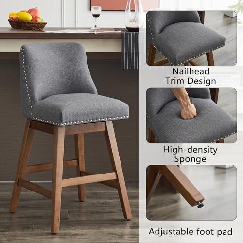 Moreover, the thoughtfully designed swivel feature enhances functionality, allowing us to turn 360 degrees, making social interactions more enjoyable. The sturdy construction, featuring high-quality rubber wood and thickened leg frames, offers reliable stability regardless of where we place it in our home. Coupled with adjustable feet to prevent floor scratches, these bar stools give us the flexibility to adapt to various spaces while maintaining style. Their classic aesthetic, complemented by metal nailhead trim and soft linen fabric, represents the elegance we seek in our decor choices, making them a perfect addition to any room.