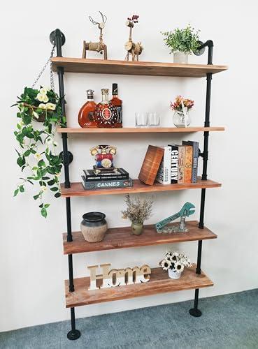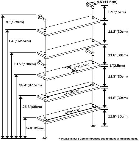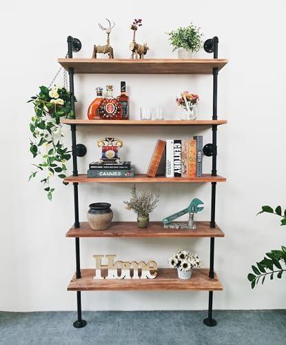 We find ourselves captivated by the aesthetic and functionality that this piece brings to our living space. The five-tier design, combined with a rustic finish, beautifully complements a variety of decor styles, particularly industrial aesthetics. Crafted from solid pinewood and robust metal pipes, it not only promises durability but also serves as an attractive display for our books and decorative items. The dimensions, at 10″ deep by 36″ wide and standing tall at 70″, create a striking visual while ensuring ample storage space. The height between shelves measures 11.8 inches, perfectly accommodating larger volumes or cherished collectibles, all while adding a unique charm to any room.