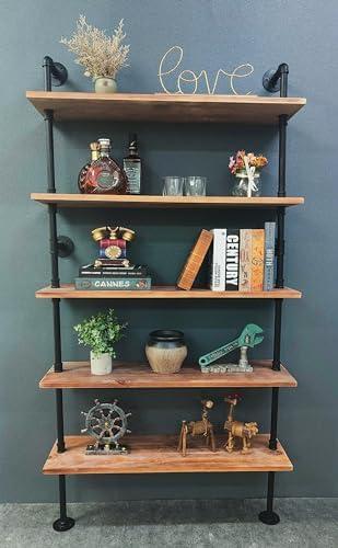 Exploring the fusion of rustic wood and robust metal, we find a stunning representation of industrial design that commands attention in any space. The rich, weathered brown finish of the solid pinewood shelves resonates with a timeless charm, while the sturdy iron pipe frame adds an edgy yet sophisticated touch. This juxtaposition creates a statement piece that complements both modern and traditional decor styles. With each of the five spacious tiers offering practicality and elegance, it serves as a perfect home for our cherished books and decorative items, effortlessly turning any wall into an artistic display.
