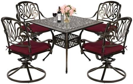 Elegant 5-Piece Outdoor Dining Set with Swivel Chairs and Square Table