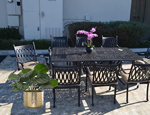 Mandalay Outdoor Patio 9pc Dining Set Dark Bronze Cast Aluminum, Walnut Cushions