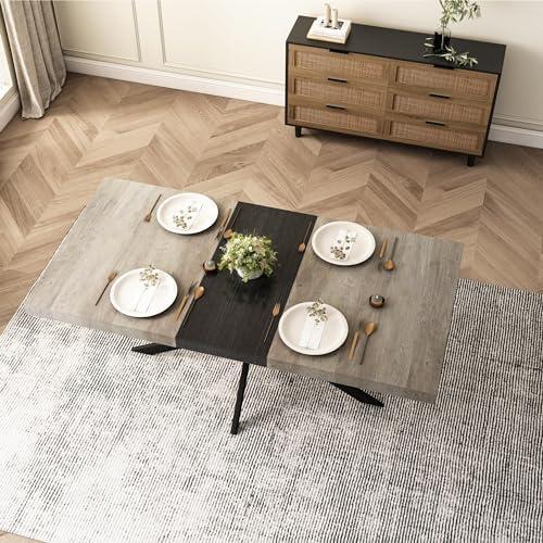 This modern rectangular table seamlessly blends functionality with style, featuring a retractable design that accommodates up to eight people and can be easily resized from 55.11 inches to 70.86 inches in length. The durable construction uses high-quality medium-density fiberboard combined with a sturdy iron tripod base, ensuring a load capacity of up to 165 lbs. Designed with a sleek grey top and a black fine sand finish on the legs, it adds a sophisticated touch to any environment—be it a kitchen, dining room, or even a workspace. The surface is scratch-resistant and easy to clean, making it ideal for daily use and long-term enjoyment.