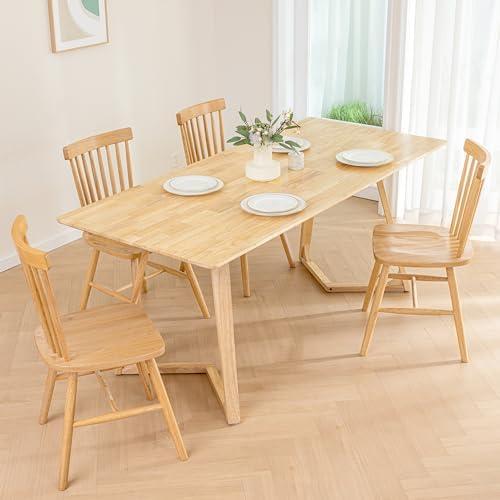 This beautifully crafted dining table is made from high-quality oak, showcasing the natural grain and texture of the wood, creating a warm and inviting atmosphere. With dimensions of 59.0″L x 31.4″W, it comfortably accommodates 4 to 6 people, making it ideal for family dinners or casual gatherings. The spacious tabletop allows for versatile use, transforming effortlessly from a dining table to an office desk or coffee table, providing ultimate adaptability for various living spaces, from the dining room to the guest room. The sturdy construction features solid wood legs designed to prevent shaking, ensuring long-lasting durability. Its rounded corners not only enhance safety but also contribute to a cozy design aesthetic.