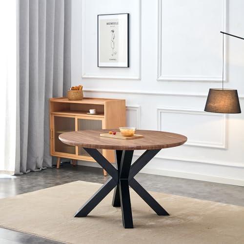This round dining table is the perfect centerpiece for any home, comfortably seating 4-6 individuals. At a diameter of 47.2 inches and a height of nearly 30 inches, it strikes a balance between functionality and style. The MDF top showcases a beautiful walnut brown finish, while the sturdy metal frame ensures lasting durability. The design not only complements a rustic or farmhouse aesthetic but also serves as a versatile piece, functioning well in dining rooms, kitchens, and even as a makeshift workspace. Whether hosting a family dinner or enjoying a casual brunch with friends, this table provides a warm and inviting atmosphere.