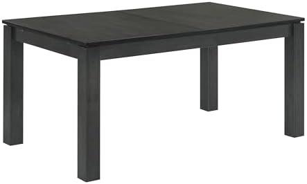 This striking dining table is a blend of style and practicality, perfect for modern homes. Crafted from quality Asian hardwood, it promises long-lasting durability and a robust construction. The large rectangular tabletop features a self-storing extension leaf, allowing it to effortlessly expand to accommodate additional guests, making it an ideal centerpiece for gatherings. Its sturdy block-style legs and deep black stain finish add a contemporary touch, enhancing any dining room’s aesthetic while also being functional.