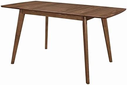 Designed with a Mid-Century Modern aesthetic, this dining table showcases a rich natural walnut finish that elevates any dining space. The rectangular shape, measuring 63 inches in width and 31.5 inches deep, makes it an ideal choice for smaller rooms while accommodating up to six diners. A convenient butterfly leaf extension adds versatility, allowing you to expand the table by 15.75 inches when entertaining guests. Crafted from a blend of Asian hardwood and MDF, it boasts robust construction with a weight limit of 300 lbs, ensuring durability during daily use.