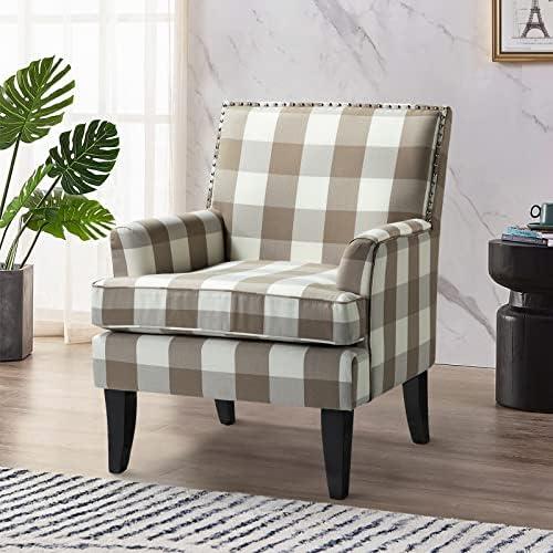 HULALA HOME Modern Accent Chair with Arms and ⁣Wooden Legs,‍ Mid Century⁤ Accent Chair Armchair ‌High Back Rest, Padded Armrest and Comfortable ‌Cushioned ⁤Seat ⁢for Living ⁤Room ‍(Buffalo Beige)
