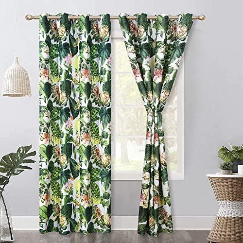 These beautifully designed drapes are made from high-quality polyester fabric, ensuring super softness and long-lasting durability. The vibrant tropical palm leaves pattern paired with a red and white floral accent adds a lively touch to any space, making them suitable for bedrooms, living rooms, dining rooms, and kitchens. With an impressive ability to block up to 85% of sunlight, these curtains provide ultimate privacy and a serene ambiance for peaceful sleep. Each panel measures 52 by 63 inches and comes with eight grommets for easy installation, while also including a matching tie back for added convenience.