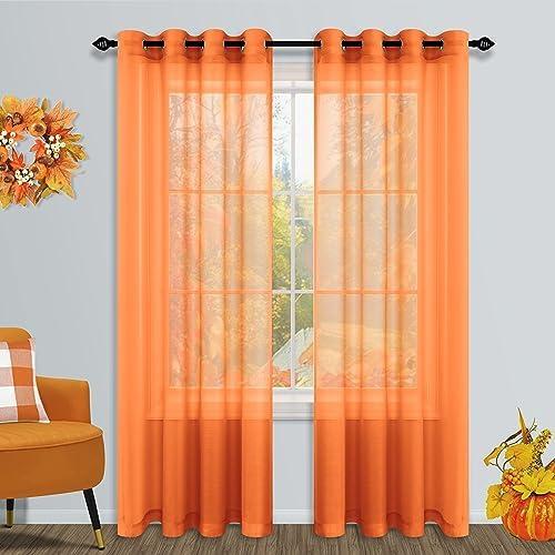 Transform your living space into a cozy autumn retreat with these sheer panels designed specifically for fall. Made from ultra-soft and lightweight fabrics, they gracefully filter sunlight while providing a touch of privacy, thanks to their textured details. Measuring 52 inches wide by 84 inches in length, each panel is adorned with eight silver grommets that ensure easy installation and smooth operation. The warm orange hue aligns perfectly with Thanksgiving themes, making them an ideal accent for living rooms, dining areas, or even festive outdoor gatherings. They also complement various other window treatments, from blackout curtains to sheer valances, giving you versatile styling options.