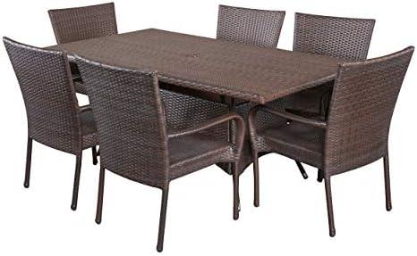 Christopher Knight Home Dunham Outdoor Wicker Dining Set, 7-Pcs Set, Multibrown