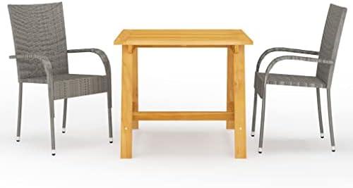 This stylish patio dining ensemble combines the warmth of solid acacia wood with the modern flair of weather-resistant materials. The table, crafted from enduring wood with an oil finish, measures 34.6″ x 34.6″ x 29.1″, offering a stable surface for meals or gatherings. Accompanied by two lightweight chairs featuring a gray finish, constructed from powder-coated steel and PE rattan, this set presents durability and ease of maintenance. The stacking capability of the chairs is a practical addition for saving space when the set is not in use.