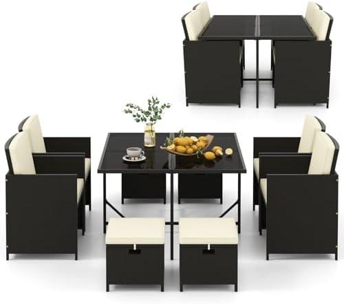 While this dining set excels in many areas, there are pros and cons to consider. Pros include its comfortable seating, stylish design, and rust-resistant materials, making it suitable for various weather conditions. Additionally, the cushions provide a soft touch and are easy to maintain due to their stain-resistant properties. However, cons might include a higher price point compared to basic outdoor sets and the need for regular maintenance to keep the finishes looking pristine. its blend of functionality and aesthetics makes it a compelling choice for enhancing your outdoor space.
