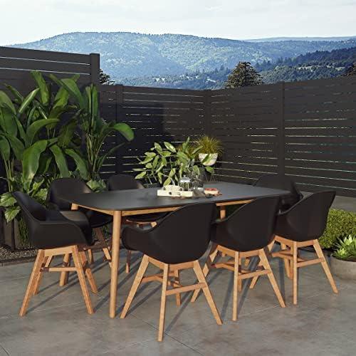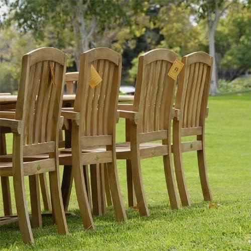 This outdoor dining set is perfect for those who cherish outdoor dining experiences. The double extension rectangle table boasts a robust construction, featuring a 1.5″ thick tabletop and sturdy legs that enhance its durability against various weather conditions. It can seamlessly fit six to eight guests, thanks to its unique extension design, ensuring that spontaneous gatherings can be accommodated effortlessly. The high-quality Indonesian grade A teak wood not only provides strength and resilience but also possesses natural oils that protect against decay, making it an excellent investment for outdoor furniture. Furthermore, the chairs are designed to offer comfort; they feature curved backs and slats that contour to the body, ensuring a pleasant seating experience.