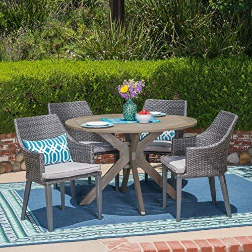 Christopher Knight Home Linsey Outdoor 5 Piece Wood and Wicker Dining Set, Gray Finish/Gray