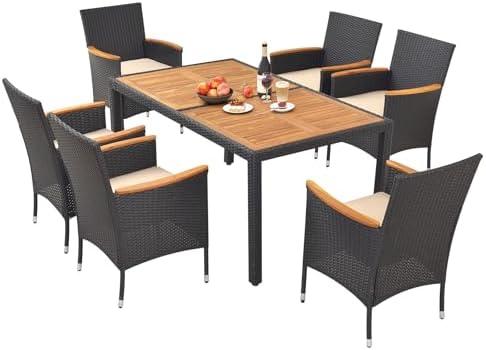 While the outdoor dining set brings numerous positives, there are some drawbacks to consider. The requirement to not leave the furniture outdoors in the rain may limit its usability during inclement weather. Additionally, assembly may be slightly challenging if screw holes are misaligned, which can lead to uneven legs. It’s also important to note that although the materials are robust, the longevity of the beautiful acacia wood can be affected if not regularly maintained with appropriate coatings. this set balances aesthetic appeal and functional comfort, making it a valuable addition to any patio or deck.