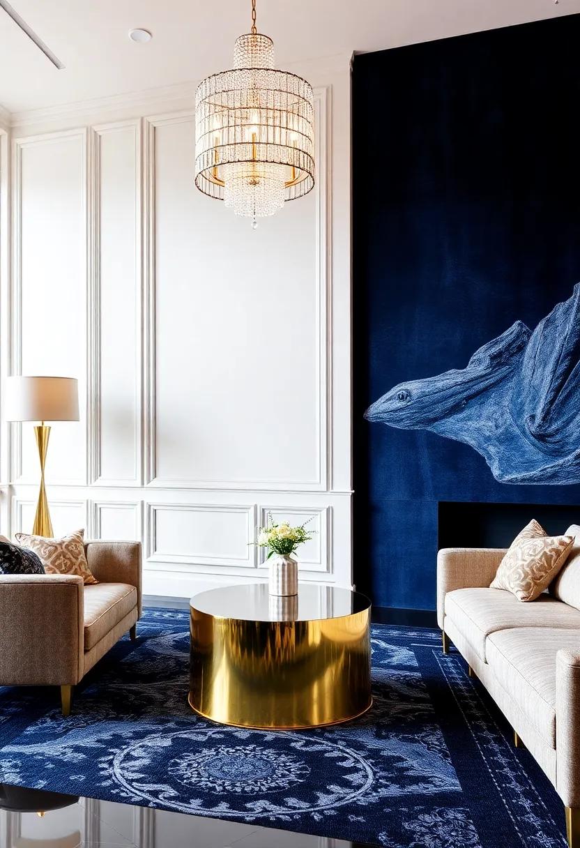 | Royal Blue & Silver | Mirrored finishes, geometric wall art |