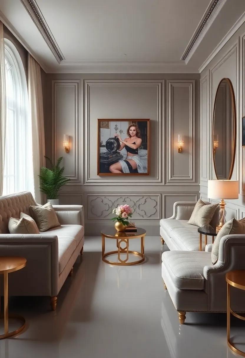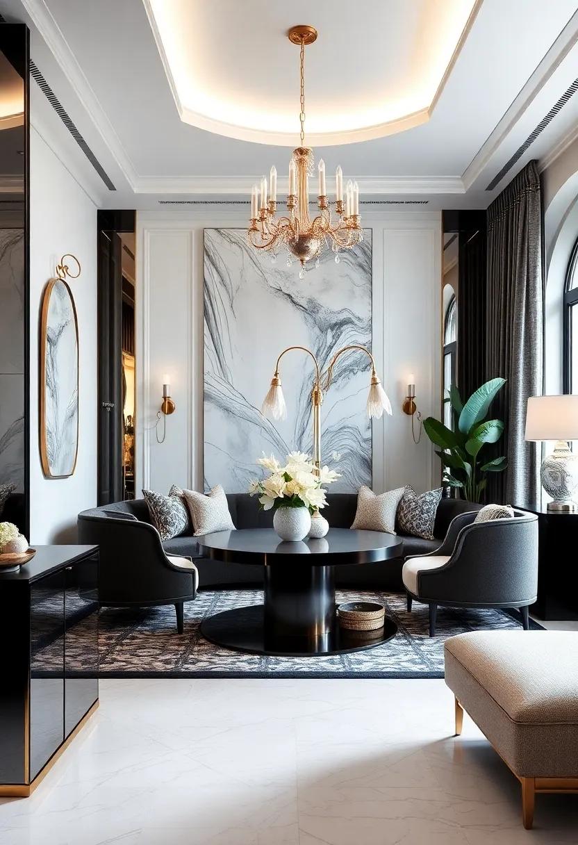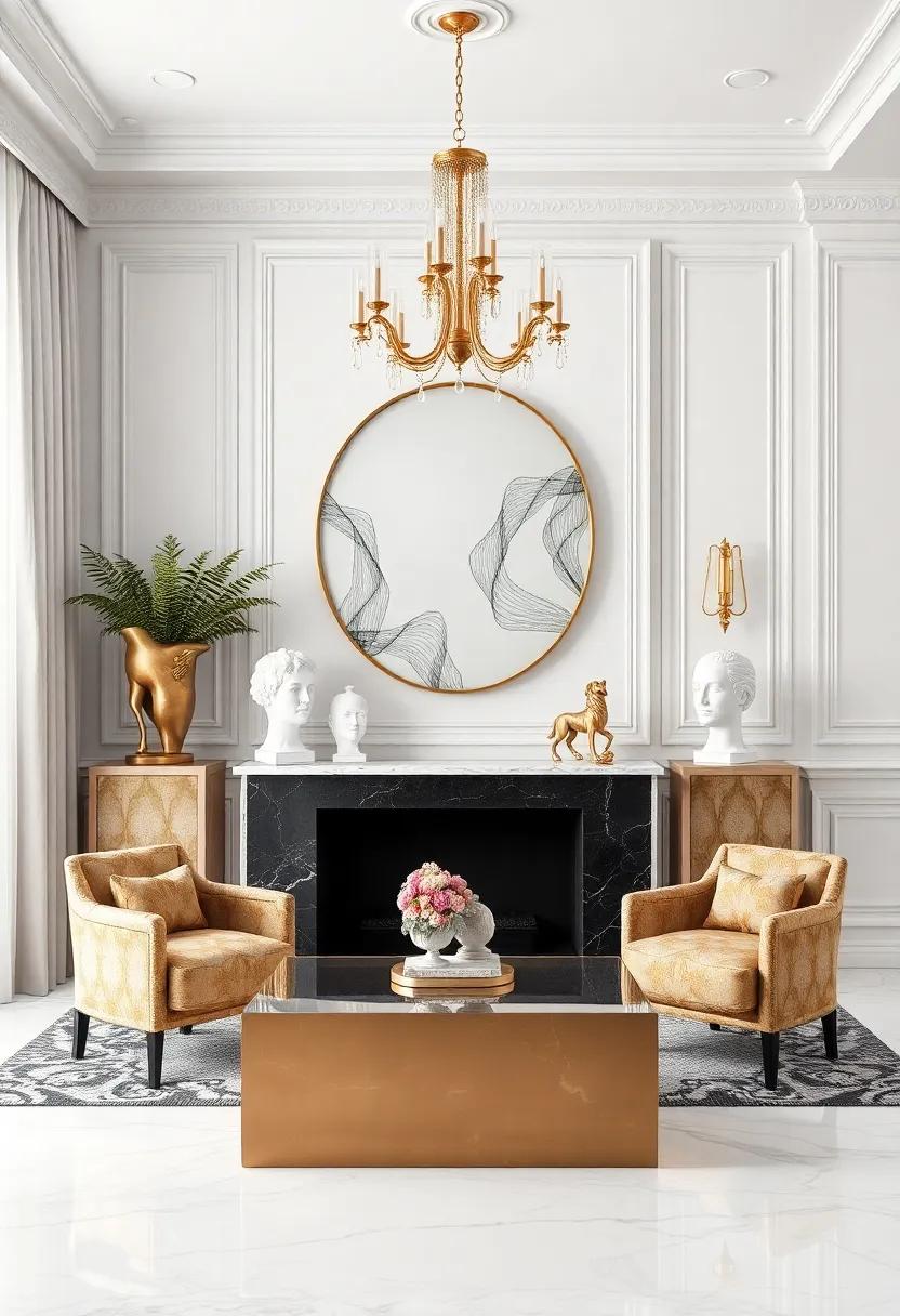 - Glamorous Accessories: Mirrors, gold or silver accents, and sculptural art pieces that evoke a sense of grandeur.