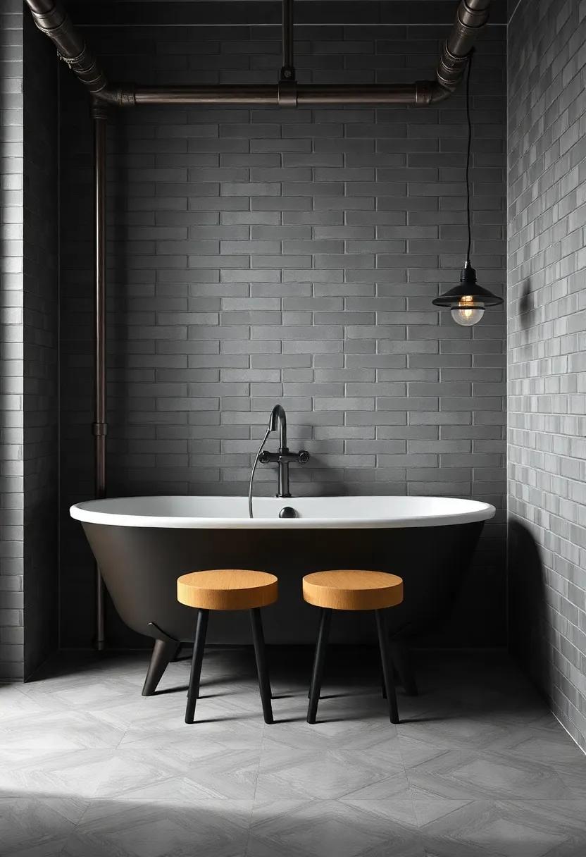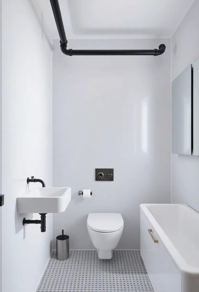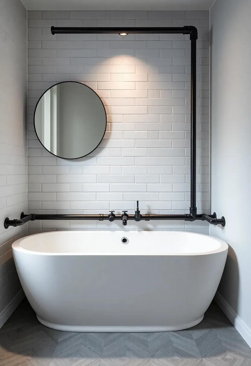 • Bold Color Schemes: Use vibrant tiles or wall colors that highlight the industrial tone of exposed pipes.