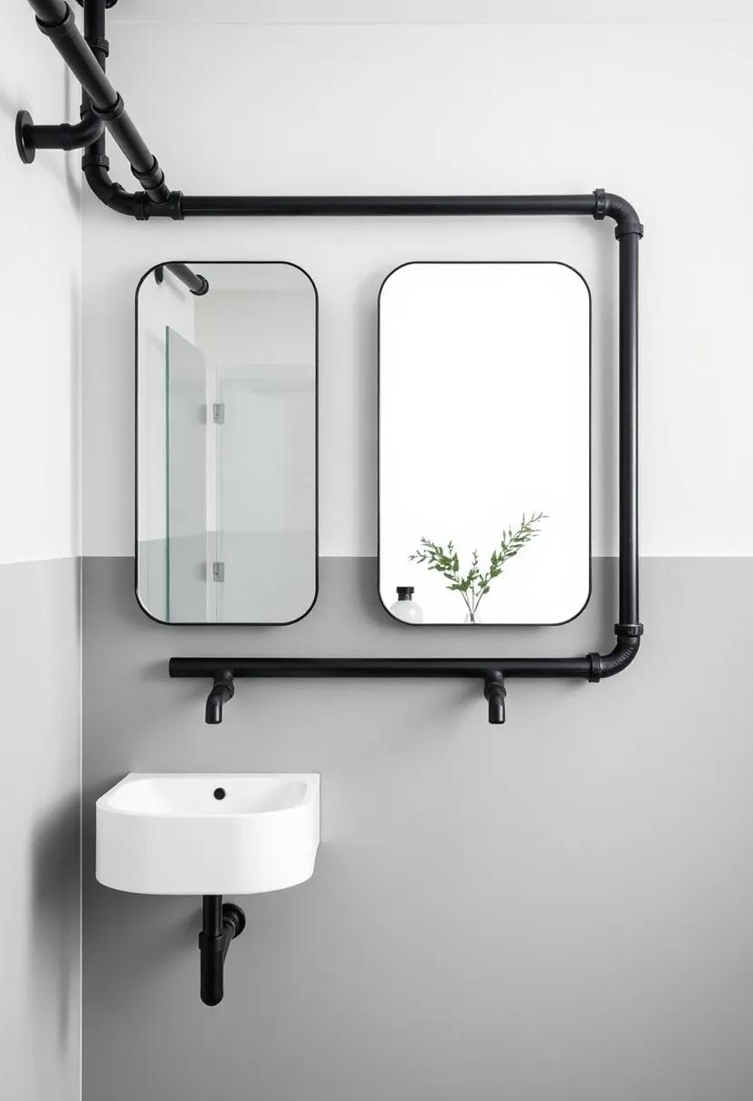 Showcasing Statement mirrors in a Pipe-Focused Bathroom