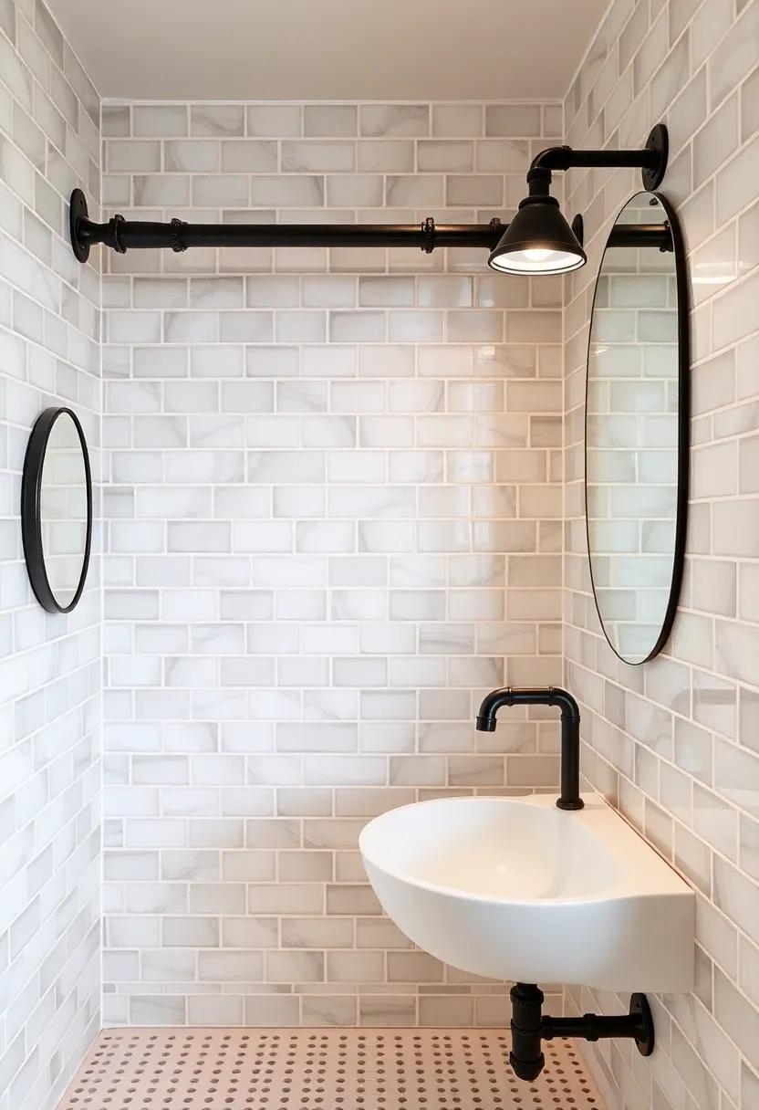 Transform your compact restroom into a stunning sanctuary by incorporating industrial elements that create character without compromising functionality.Consider using exposed pipes and brass fixtures to give a nod to vintage factory aesthetics while maintaining modern convenience. Play with contrasting materials; as a notable example, pair rough-hewn wood vanities with polished metal accents—this not only enhances the visual appeal but also brings warmth to an or else cold industrial look. The right balance of textures will elevate the space, making it feel both polished and inviting.