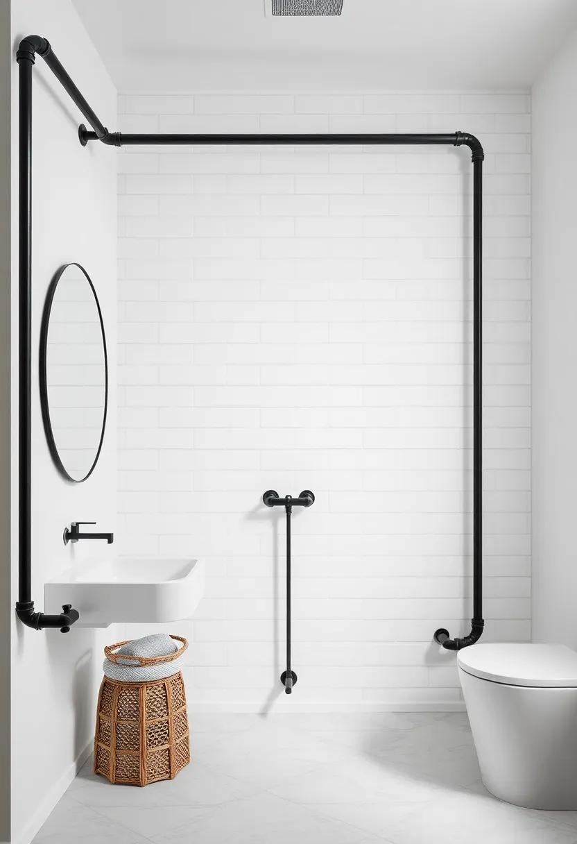 Bespoke Storage Solutions Utilizing Pipe Designs in Bathrooms