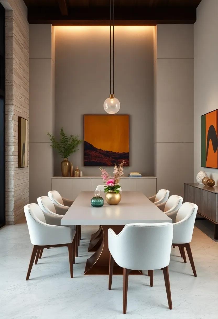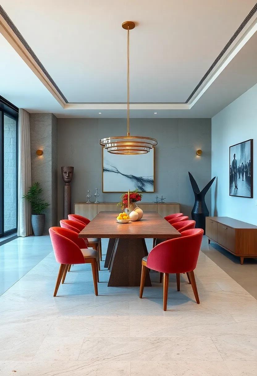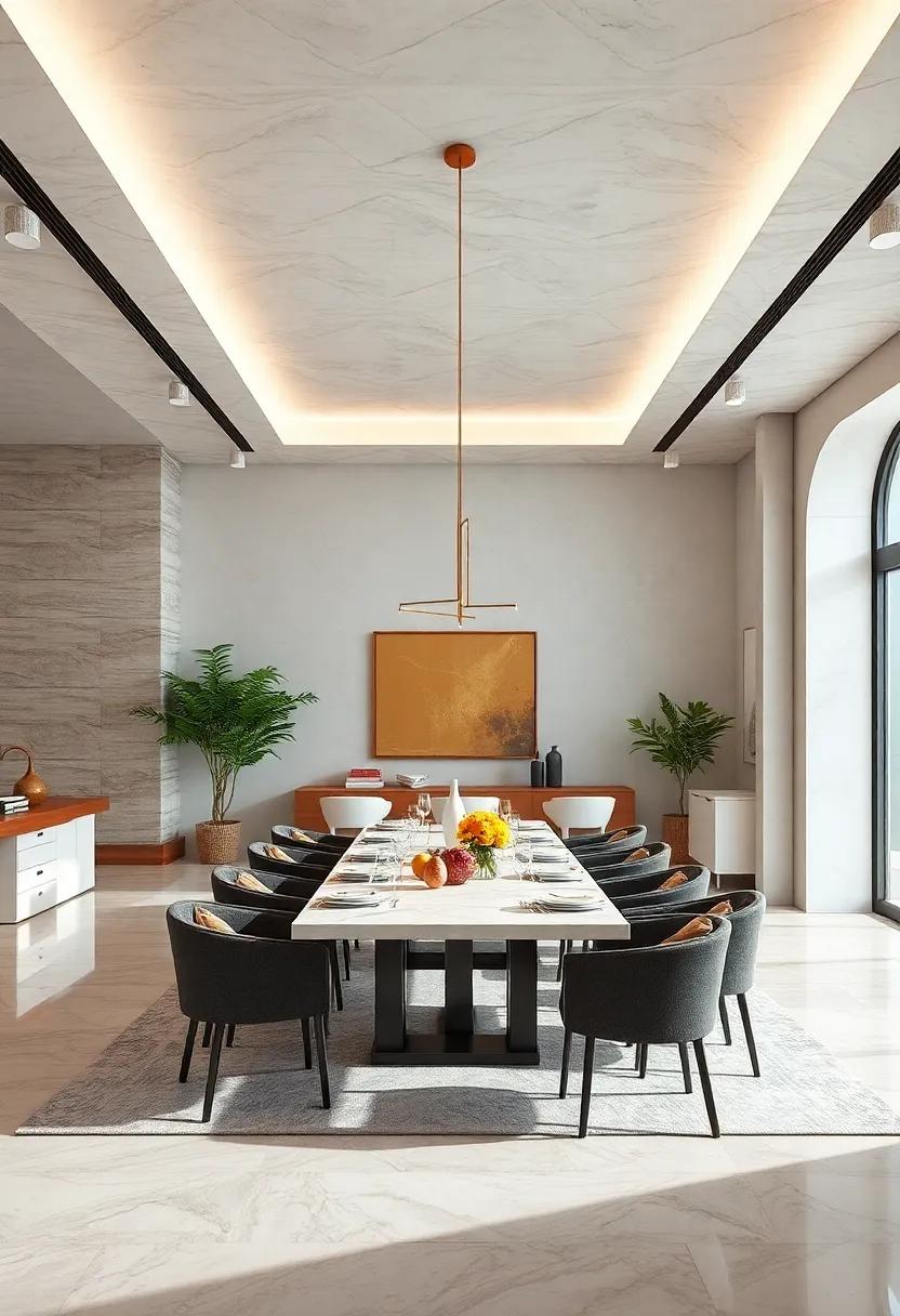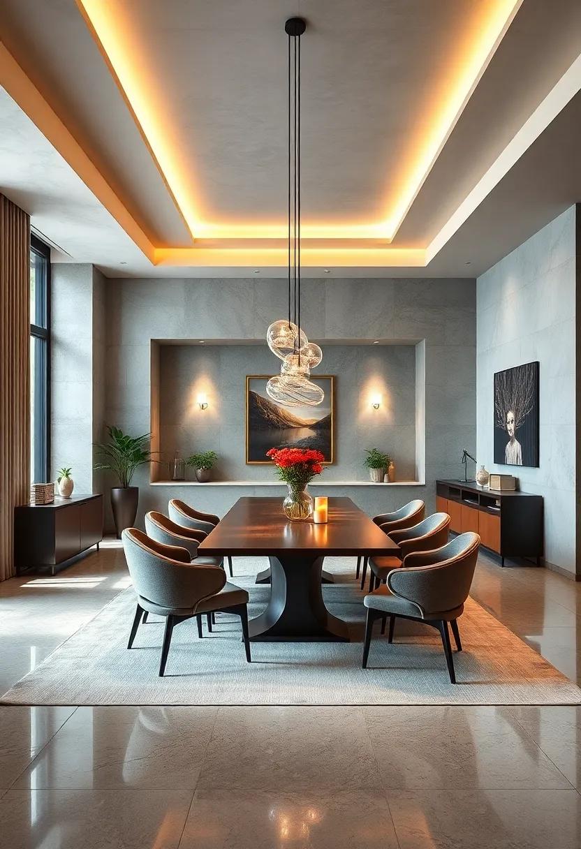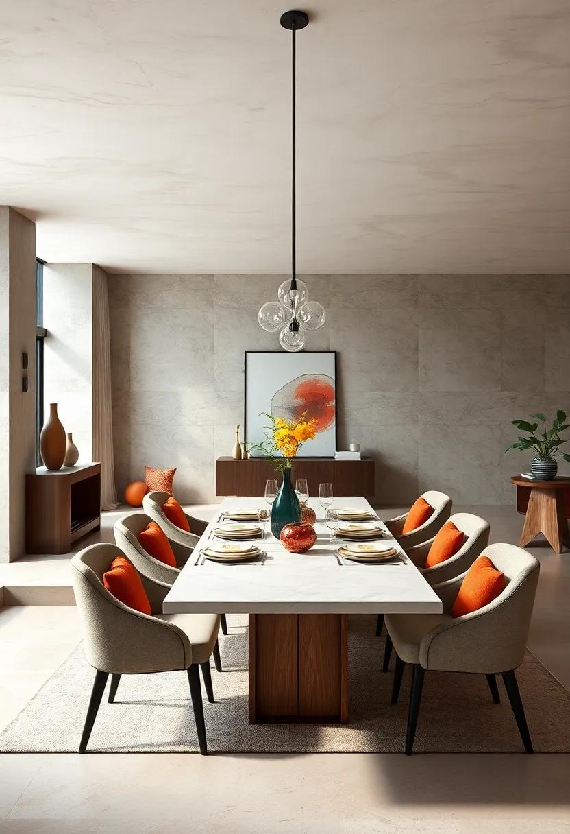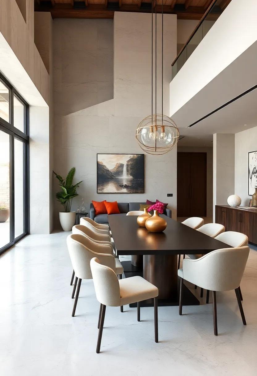 - Statement Lighting fixtures: Oversized pendant lights or sculptural chandeliers serve as focal points, drawing attention to the dining space.