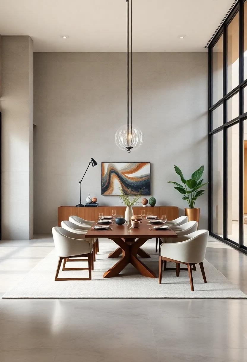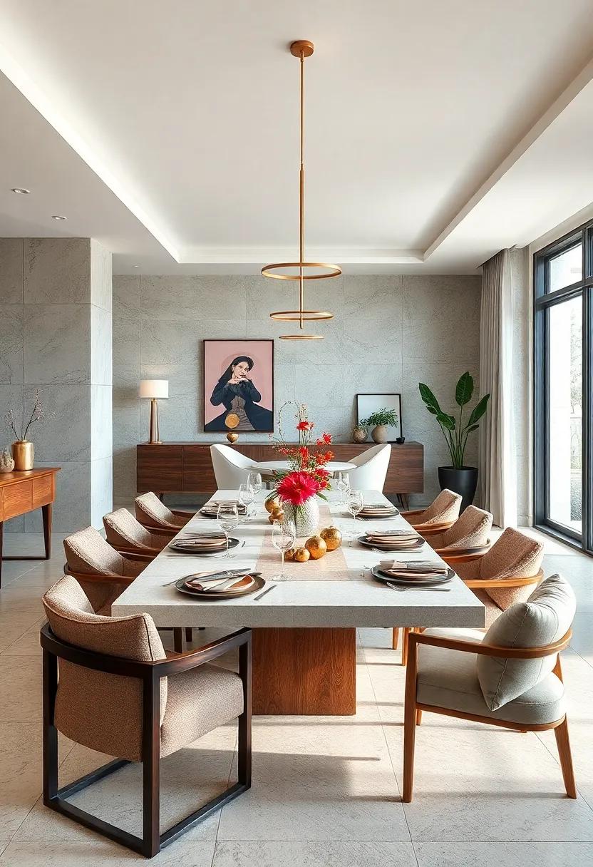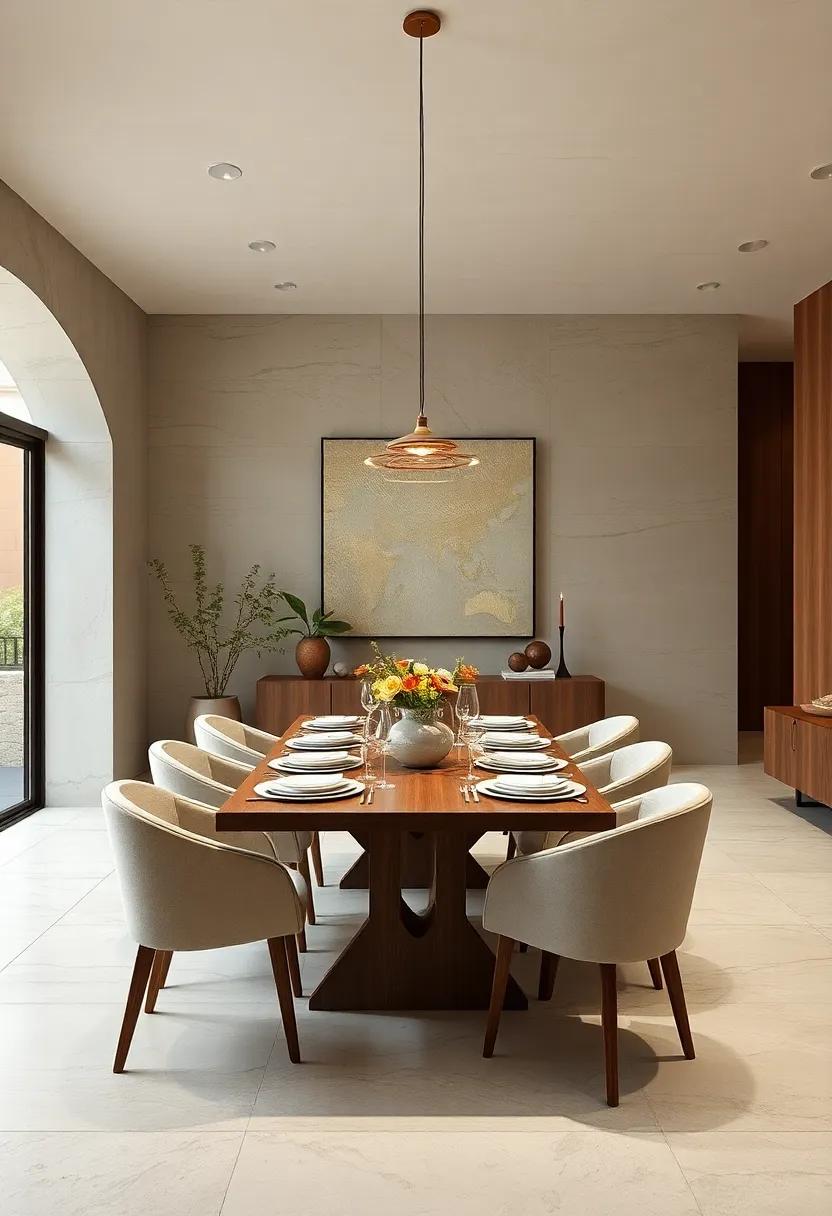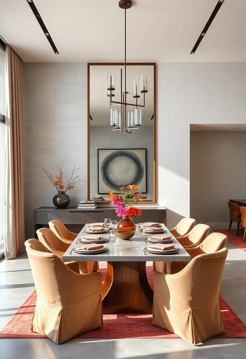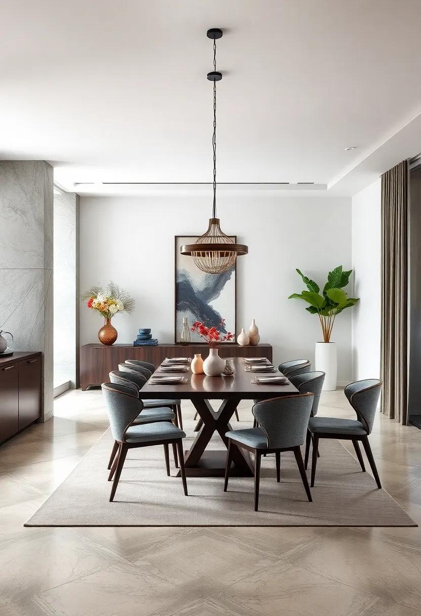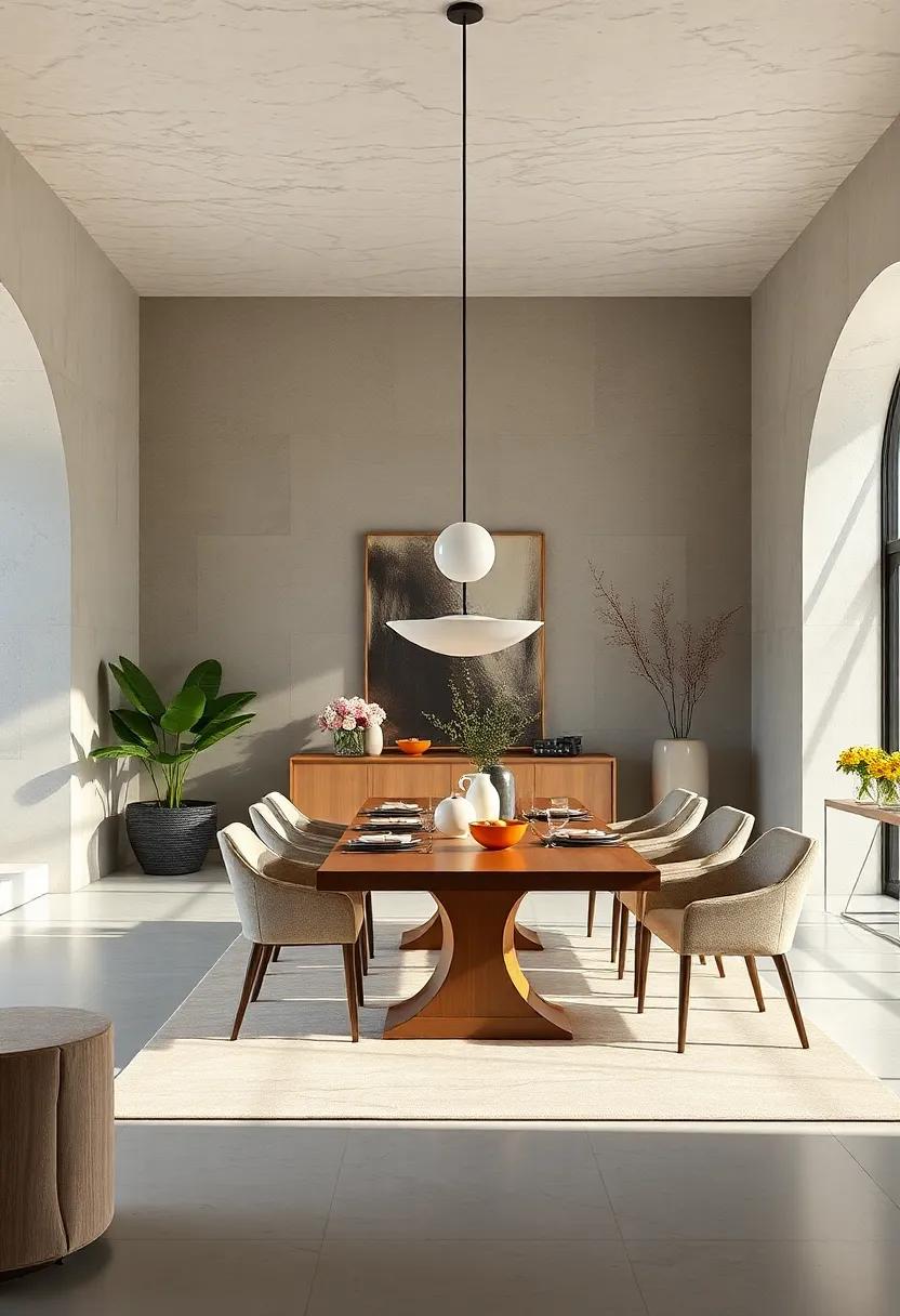 - Statement Lighting fixtures: Oversized pendant lights or sculptural chandeliers serve as focal points, drawing attention to the dining space.