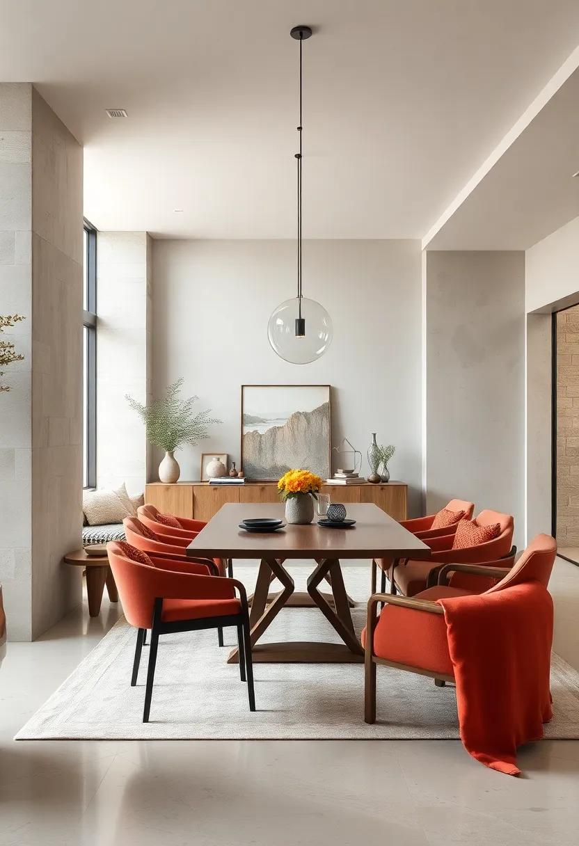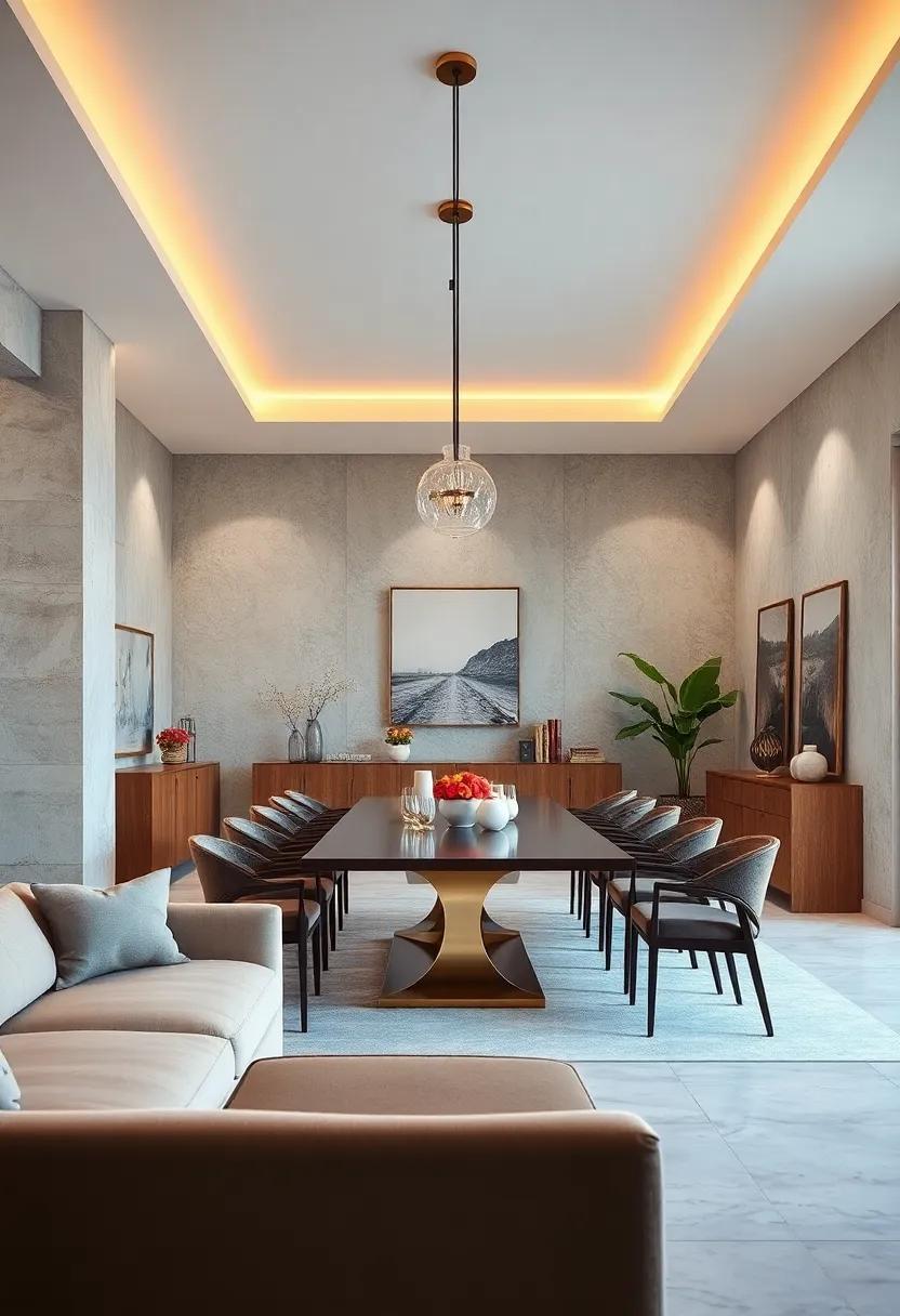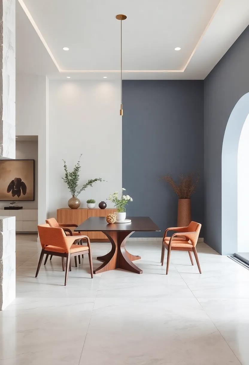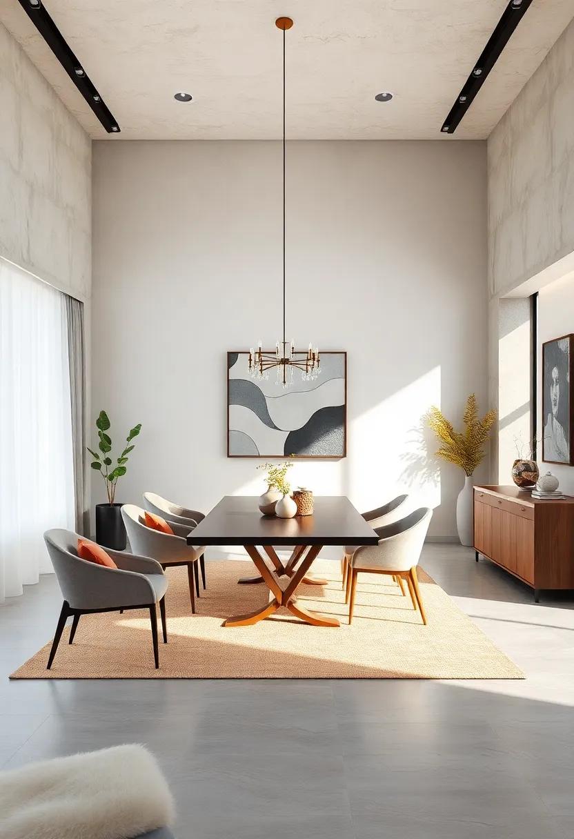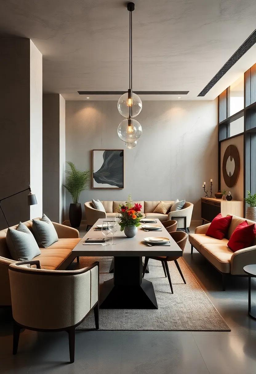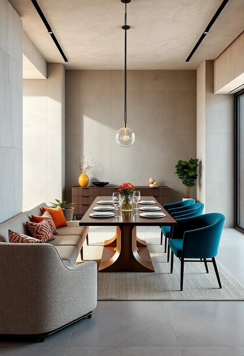 - Statement Lighting fixtures: Oversized pendant lights or sculptural chandeliers serve as focal points, drawing attention to the dining space.
