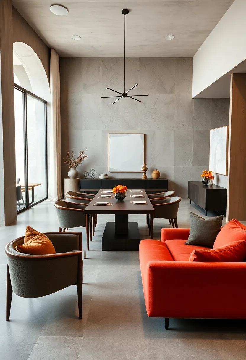 | Concrete | Leather upholstery | Creates a sophisticated industrial feel |