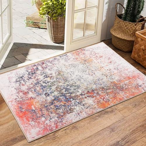 2×3 Rug ⁢Washable Boho Rug Soft Small ⁣Area⁣ Rug Non-Slip Doormat Faux​ Wool Abstract Rug Low Pile⁢ Indoor Throw Rug ⁢for Kitchen, Floor, Entryway