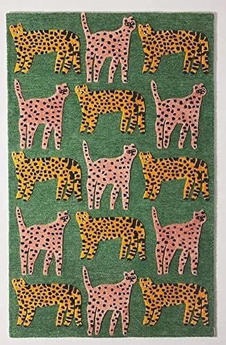 Woolen Tufted ‌Green ⁣Catwalk Rug Tufted Wool Hand Tufted Animal Print Large Area Rug Pink Colored Rug Golod Colored Rug‍ (10×14 Feet)