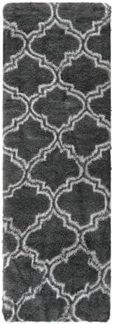 Zacoo Runner ⁤Rug 2×6 Shag Rug for Living Room Shaggy Rug‍ Kids⁣ Rug Plush Rug Moroccan ‍Geometric ⁤Carpet Bedroom ⁢Fluffy Rug Bedside Rug ​Soft Rug Non ⁣Skid Rug Modern Area Rug‍ for Nursery Dorm, Black‌ 2’x6′