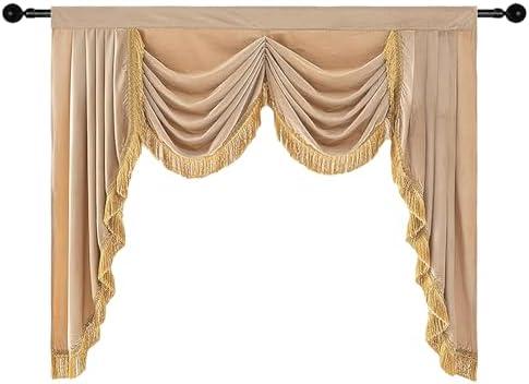 This distinctive curtain swag set is crafted from luxurious velvet and high-density shading fabric, offering both aesthetic appeal and functional benefits. It is designed to beautifully adorn windows while blocking part of the line of sight and providing sun protection. With a sophisticated beige color, these drapes effortlessly blend with various interior styles, making them ideal for living rooms, bedrooms, or event spaces like weddings and parties. The soft material and delicate stitched edges add a touch of elegance to your décor while ensuring durability and stability without fading over time.