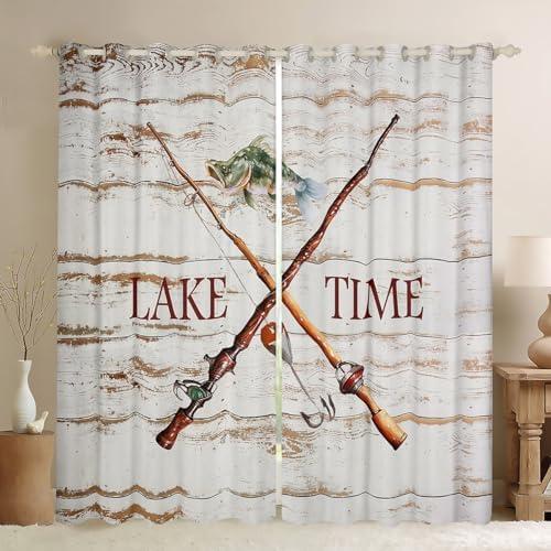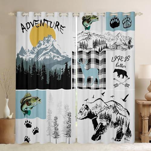 These beautifully designed window treatments feature a fishing theme that adds a touch of rustic charm to any lodge or cabin-style room. Made of soft velvet fabric, they not only enhance your decor but are also skin-friendly and provide a noticeably soft hand feel. The two-panel set measures 38 inches wide by 54 inches long, making them ideal for filling various window sizes, from living rooms to bedrooms. The modern design, with vibrant colors and clear patterns, will appeal to fishing enthusiasts and create a relaxing atmosphere reminiscent of lake life.