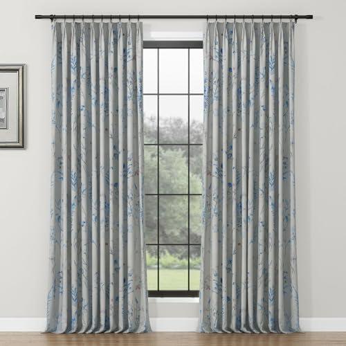 This beautifully designed curtain boasts a stunning blue floral print that adds a touch of elegance to any room. Made from a blend of 5% linen and 95% polyester, it features pinch pleats that give it a sophisticated, tailored look. The panel is sold individually and comes with adjustable pin hooks for easy installation, though drapery rod rings are not included. With its stylish aesthetic, it can enhance modern décor while providing a soft and natural ambiance without being overpowering. The 72-inch length makes it suitable for various window sizes, perfect for kitchen or living space enhancement.