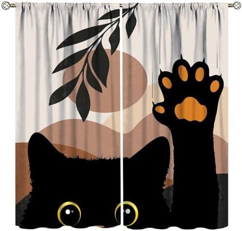 The unique design combines elements of mid-century style with bohemian vibes, showcasing a captivating pattern of eucalyptus leaves and a black cat set against a background of abstract geometry. These window treatments not only enhance the overall decor of any room, be it a bedroom or living room, but also provide practical benefits. With a 100% privacy protection feature, they effectively block unwanted light, creating a cozy atmosphere. Crafted from high-quality velvet polyester, they are soft to the touch, skin-friendly, and made without harmful chemicals, making them perfect for homes with kids and pets.