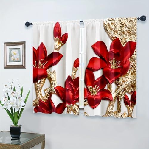 Stylish Metallic Red and Gold Floral Short Cafe Curtains for a Touch of Elegance