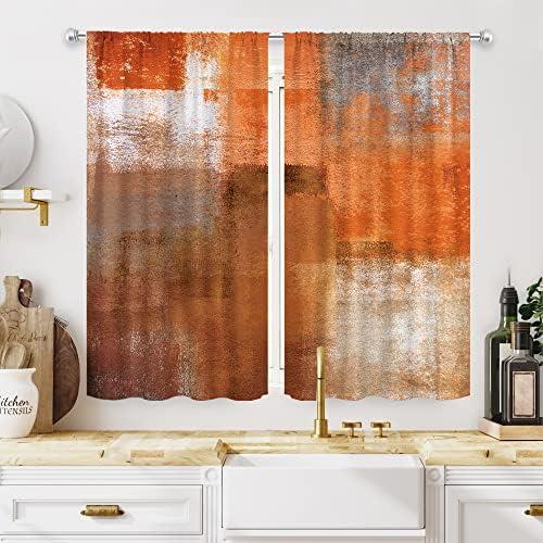 Transform your space with these short window drapes that feature a stunning burnt orange abstract design, perfectly complemented by shades of gray and rust brown. Made from smooth, thick, and soft polyester, these curtains not only add a rich touch of artistry to any room but also serve practical functions. Each panel measures 27.5 inches wide by 39 inches tall, offering an impressive combined width of 55 inches. Ideal for smaller windows or as accents in living rooms, bedrooms, or dining areas, these drapes can easily enhance the atmosphere of your home.