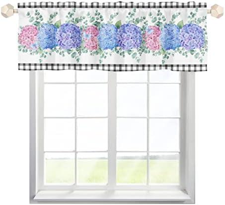With a vibrant hydrangea and eucalyptus leaf design set against a chic black and white checkered background, these valances add a touch of elegance to any space. Measuring 54 inches wide by 18 inches long, they fit standard rods perfectly and create a beautiful framing effect for windows in any room, including kitchens, bedrooms, and living areas. The durable polyester fabric not only enhances the visual appeal but also allows natural light to filter through, maintaining a balance of illumination and privacy.