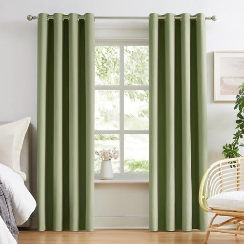 These 96-inch blackout curtains come in a stylish sage color and feature a high-quality cotton-like fabric designed to enhance your home décor while providing practical benefits. Each panel measures 42 x 96 inches and includes 8 rust-resistant grommets that make installation effortless. The integrated blackout lining offers 100% light blockage, ensuring privacy and protecting your interiors from fading. Additionally, these curtains are designed to help maintain room temperature, keeping your space cooler in the summer and warmer in the winter.