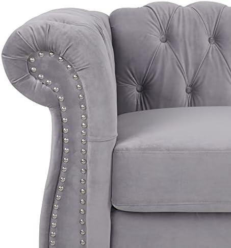 Our experience with this sofa set has been overwhelmingly positive. From the moment we unpacked it, we were struck by its elegant design, characterized by deep button tufting, nailhead accents, and charming scrolled arms. The modern velvet material not only adds a touch of luxury to our living room but is also remarkably soft, providing a cozy seating experience. We appreciated the high-density foam cushions that offer ample support and comfort, making them perfect for both lounging and entertaining guests. The sturdy construction, thanks to its solid wood frame, has given us confidence in its durability, ensuring that it will withstand the test of time.