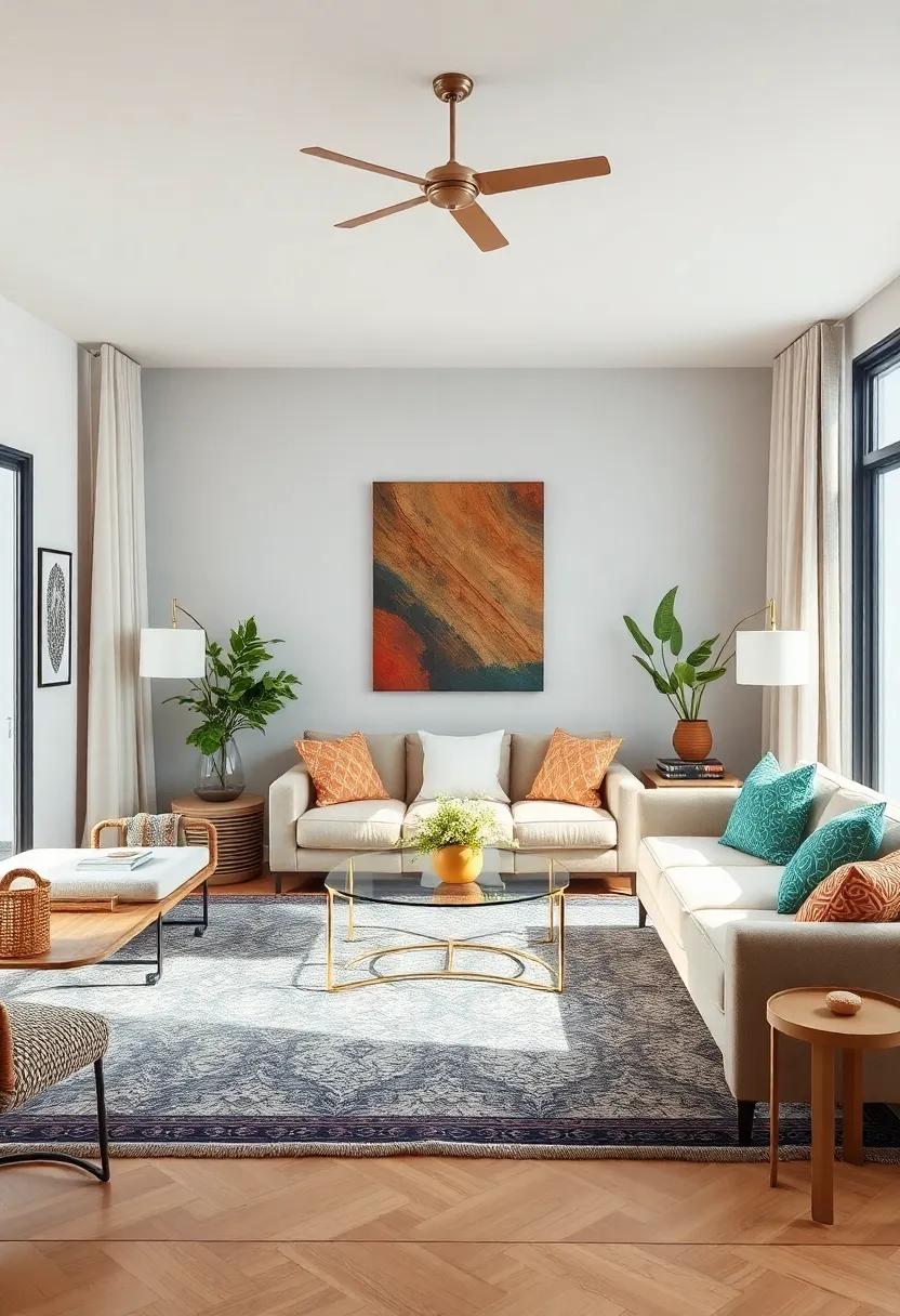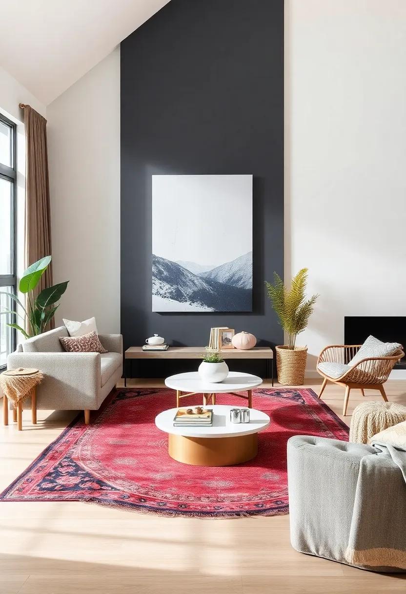 - Rug Patterns: Choose a geometric rug that incorporates multiple colors to anchor the space.