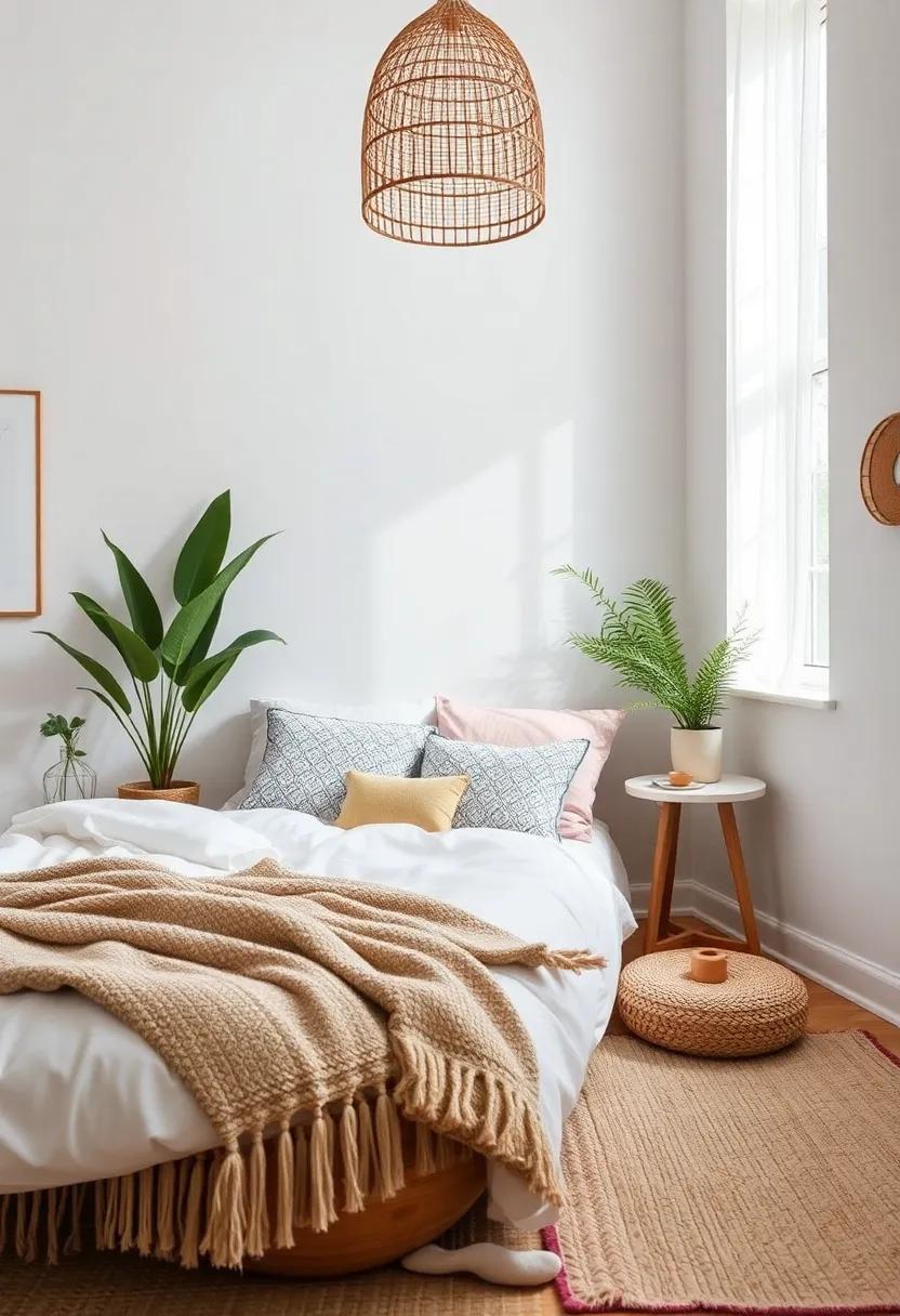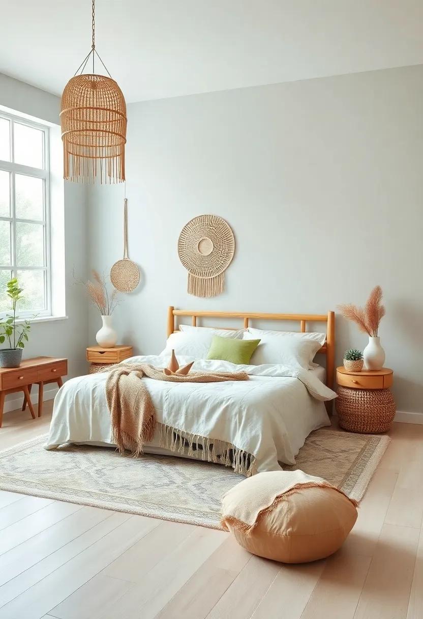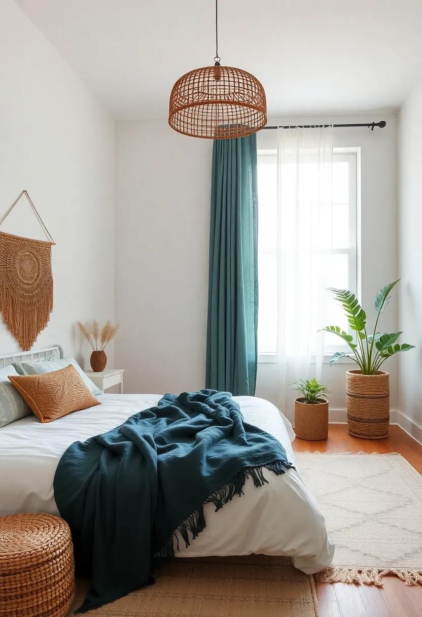 When creating a boho bedroom, ​the concept of minimalism blends harmoniously with the​ free-spirited nature of bohemian⁤ design. ⁤To cultivate an ​atmosphere of clarity ⁤and focus,​ it’s essential to​ curtail the visual clutter often associated ⁤with overly‌ ornate boho ‌aesthetics.⁢ Consider adopting a balanced⁤ approach by incorporating⁤ natural⁣ textures and earthy palettes that‌ evoke‍ tranquility⁢ while maintaining⁢ a sense of ‍warmth. By intentionally⁢ selecting a few statement ‌pieces, such as⁣ a striking macramé ⁣wall hanging ⁤or a‍ well-placed potted plant, ‌the space becomes ​an oasis of calm, inviting your mind to ⁤unwind and ‍reflect.