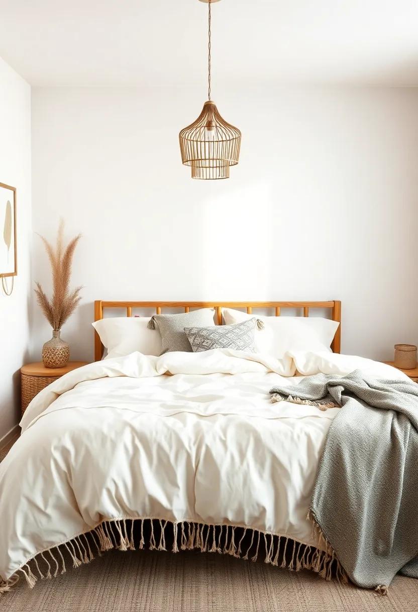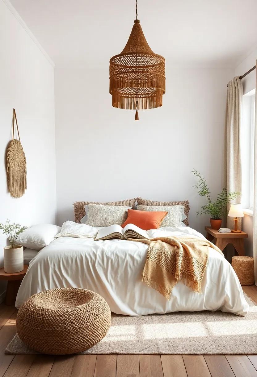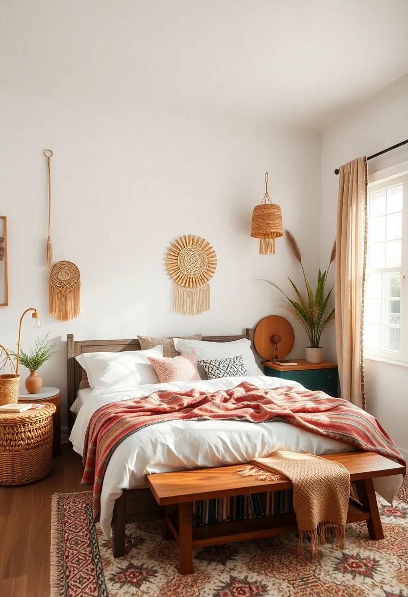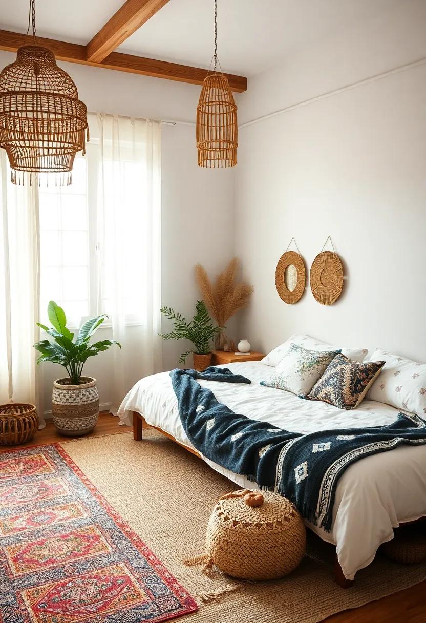 When creating a boho bedroom, ​the concept of minimalism blends harmoniously with the​ free-spirited nature of bohemian⁤ design. ⁤To cultivate an ​atmosphere of clarity ⁤and focus,​ it’s essential to​ curtail the visual clutter often associated ⁤with overly‌ ornate boho ‌aesthetics.⁢ Consider adopting a balanced⁤ approach by incorporating⁤ natural⁣ textures and earthy palettes that‌ evoke‍ tranquility⁢ while maintaining⁢ a sense of ‍warmth. By intentionally⁢ selecting a few statement ‌pieces, such as⁣ a striking macramé ⁣wall hanging ⁤or a‍ well-placed potted plant, ‌the space becomes ​an oasis of calm, inviting your mind to ⁤unwind and ‍reflect.