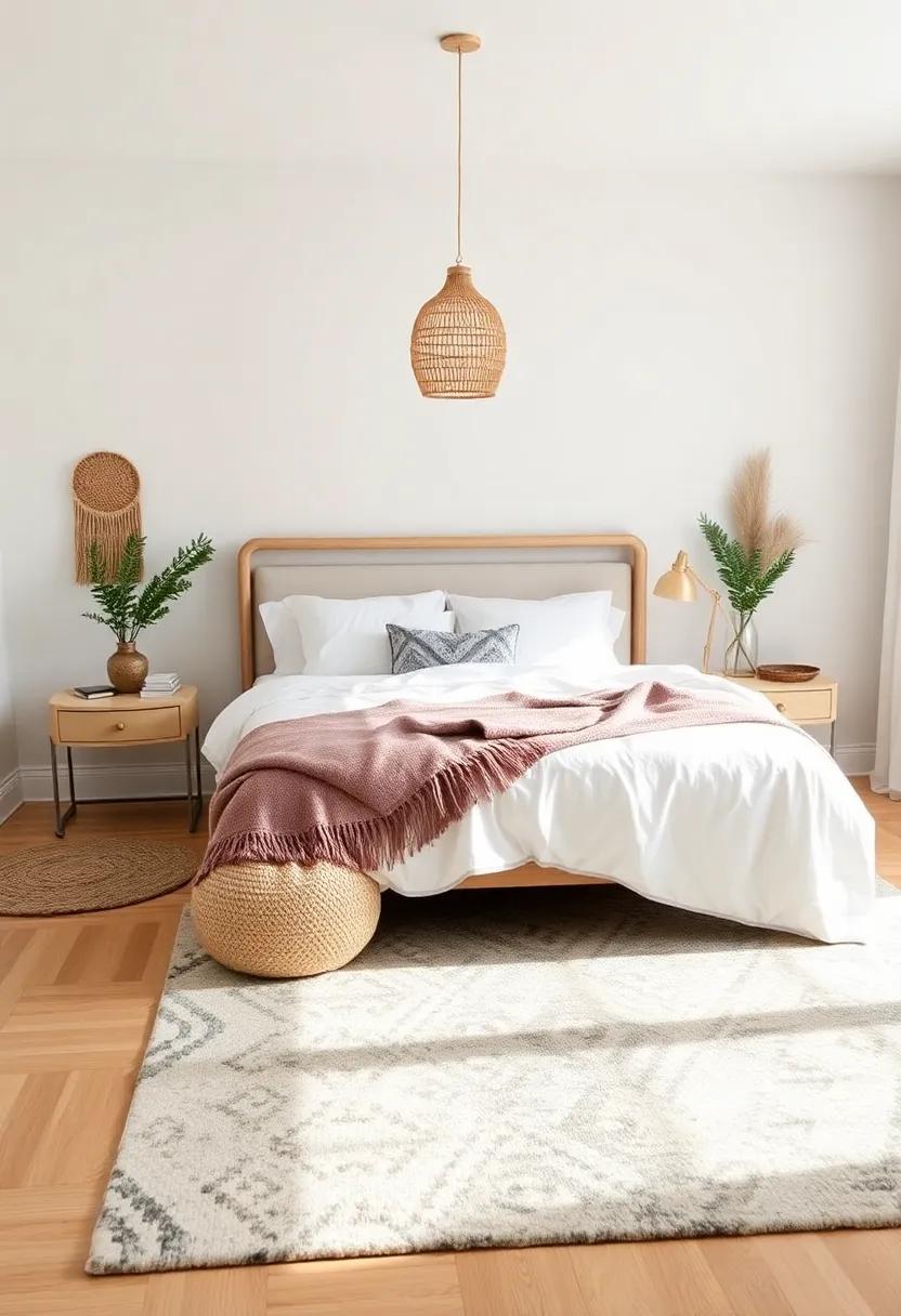Incorporate ​rugs​ in various‍ shapes and sizes ⁢to ‌establish a harmonious balance.For example, a large, oversized ⁣rug can​ anchor the bed, ⁢while ⁣smaller, accent⁣ rugs can highlight⁣ seating ⁣areas ​or bedside tables. When selecting colors ​and patterns, opt for warm earthy tones or vibrant,⁢ playful prints typical of boho design.This approach not only ⁤elevates the visual appeal but also invites you to ​sink into the comfort of your space.