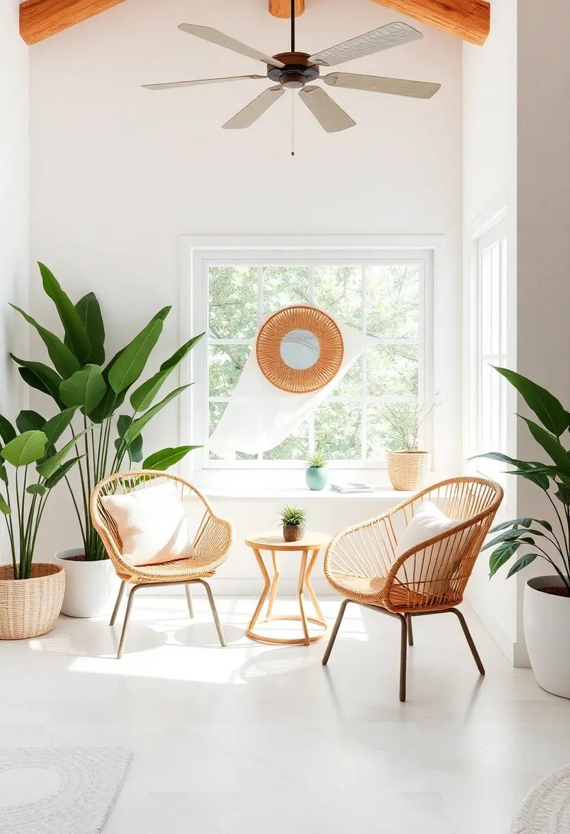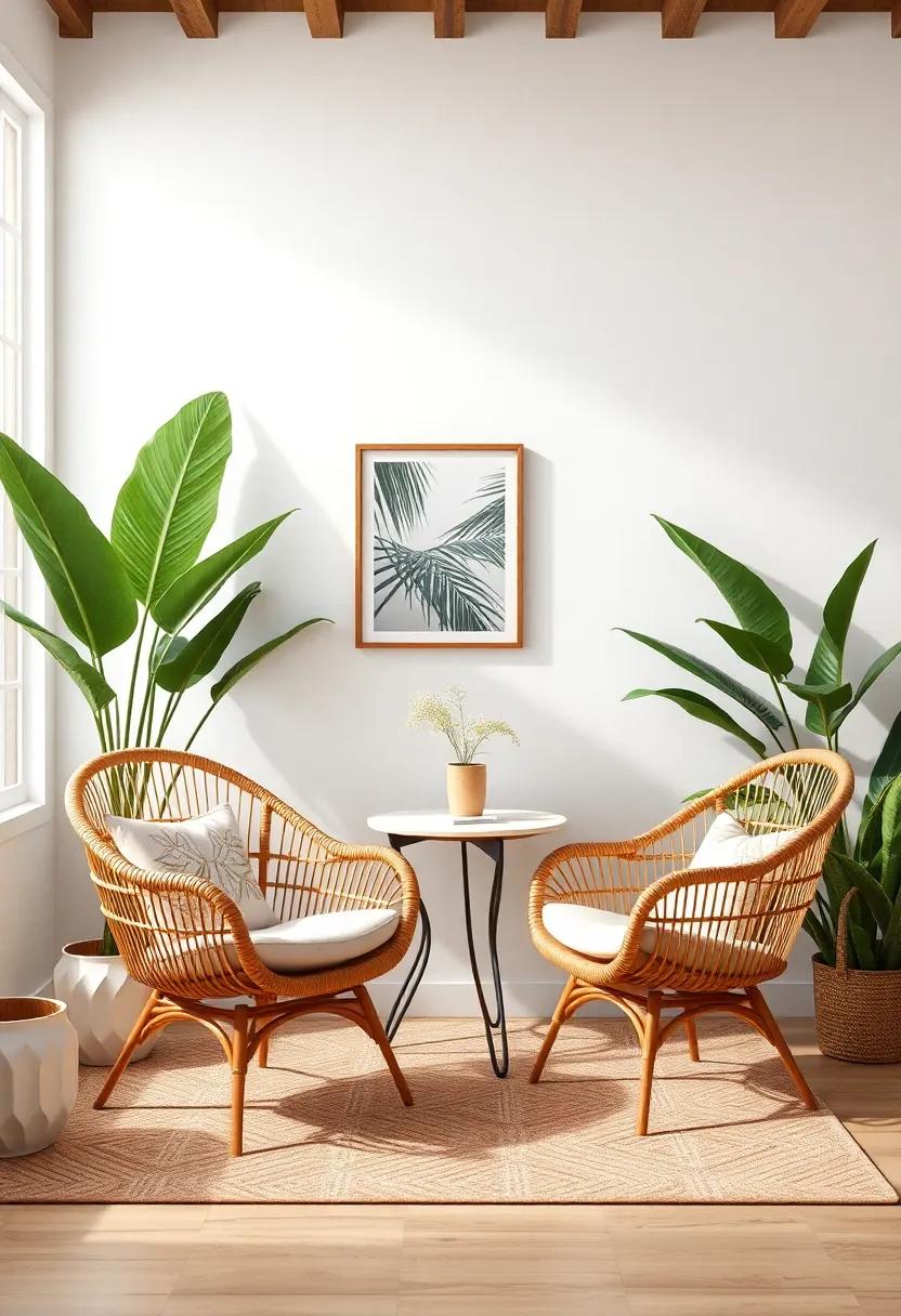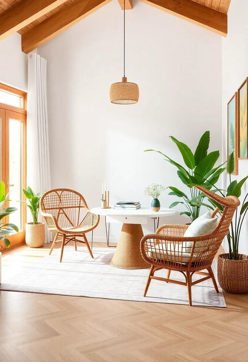 - Color Palette: Opt for soft, neutral tones complemented by natural rattan hues.
