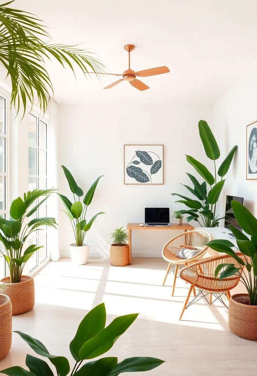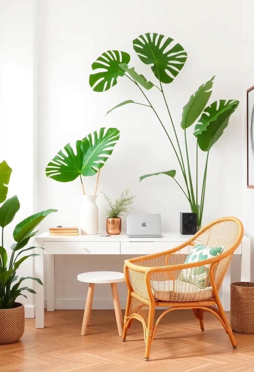 To enhance the tropical feel further, consider pairing your greenery with natural materials and warm tones. A stylish rattan desk or a bamboo chair can complement your plants beautifully. Additionally, using earthy tones in your decor can harmonize the overall ambiance. Here’s a simple overview of how to combine these elements:
