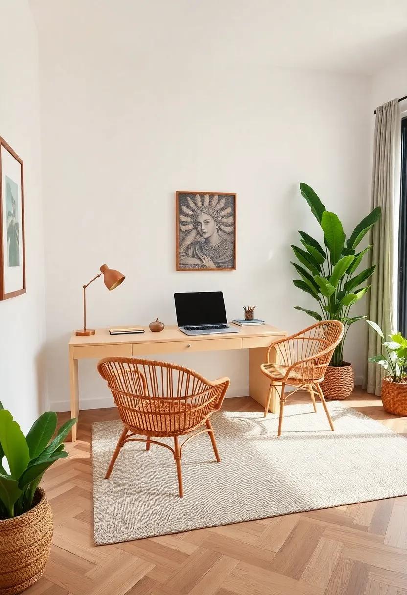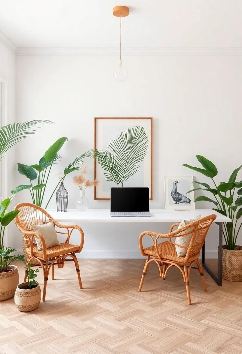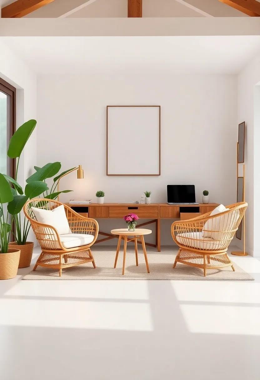 rattan elements seamlessly blend functionality with aesthetic appeal, creating a soothing ambiance that’s perfect for a home office. Consider incorporating rattan furniture such as ergonomic chairs or lightweight desks that offer ample workspace while maintaining a sense of openness. These natural materials not only enhance the visual flow of the room but also evoke a feel of tropical gardens, allowing your productivity to thrive amid a relaxed atmosphere. Pair rattan pieces with soft textiles, like cotton throw pillows or woven rugs, to add comfort and warmth to the environment. This combination fosters a productive yet tranquil workspace where ideas can blossom freely.