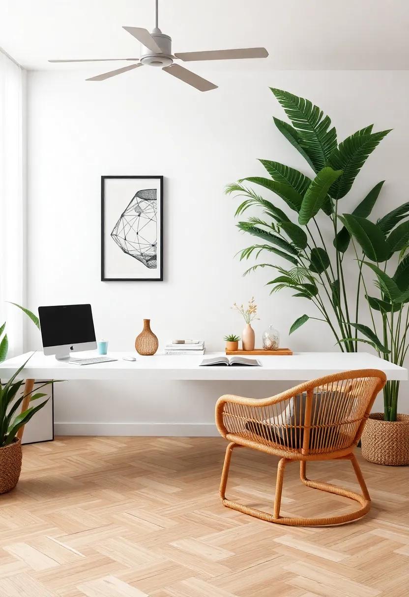 additionally, incorporating flexible seating arrangements and modular storage solutions can greatly enhance the usability of your workspace. Rattan accents—be it a cozy armchair or a chic bookshelf—provide an understated elegance and invite a tropical feel. Strategically placed greenery, whether in the form of potted plants or hanging vines, can further encourage creativity and clarity of thought. Below is a table showcasing essential design elements and their benefits: